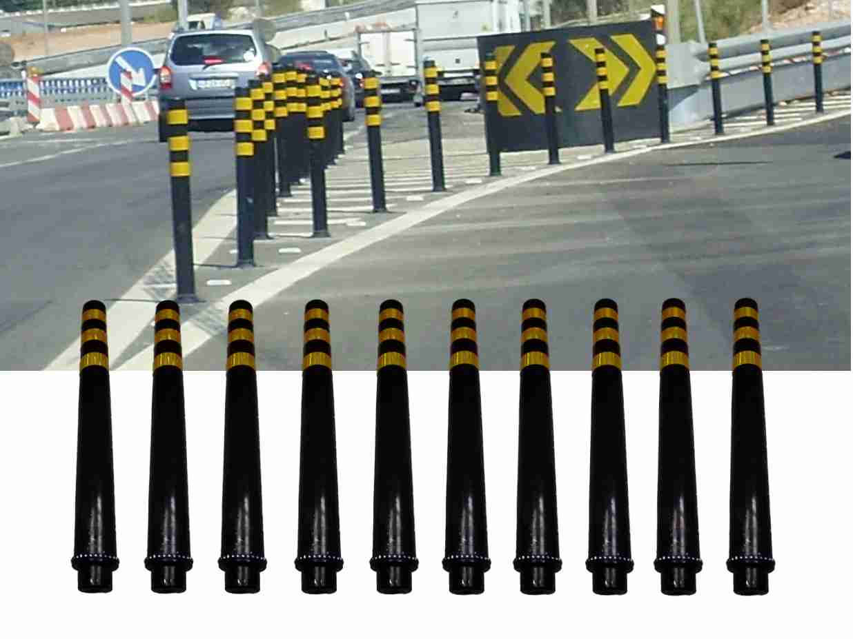 Os balizadores cilíndricos são instalados no pavimento com o objectivo de reforçar marcas viárias.