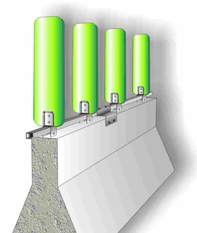 O dispositivo anti-encandeamento é fixado somente pela sua parte inferior e são projectados de modo a serem compatíveis com montagem em barreiras de segurança segundo a EN 1317-2.